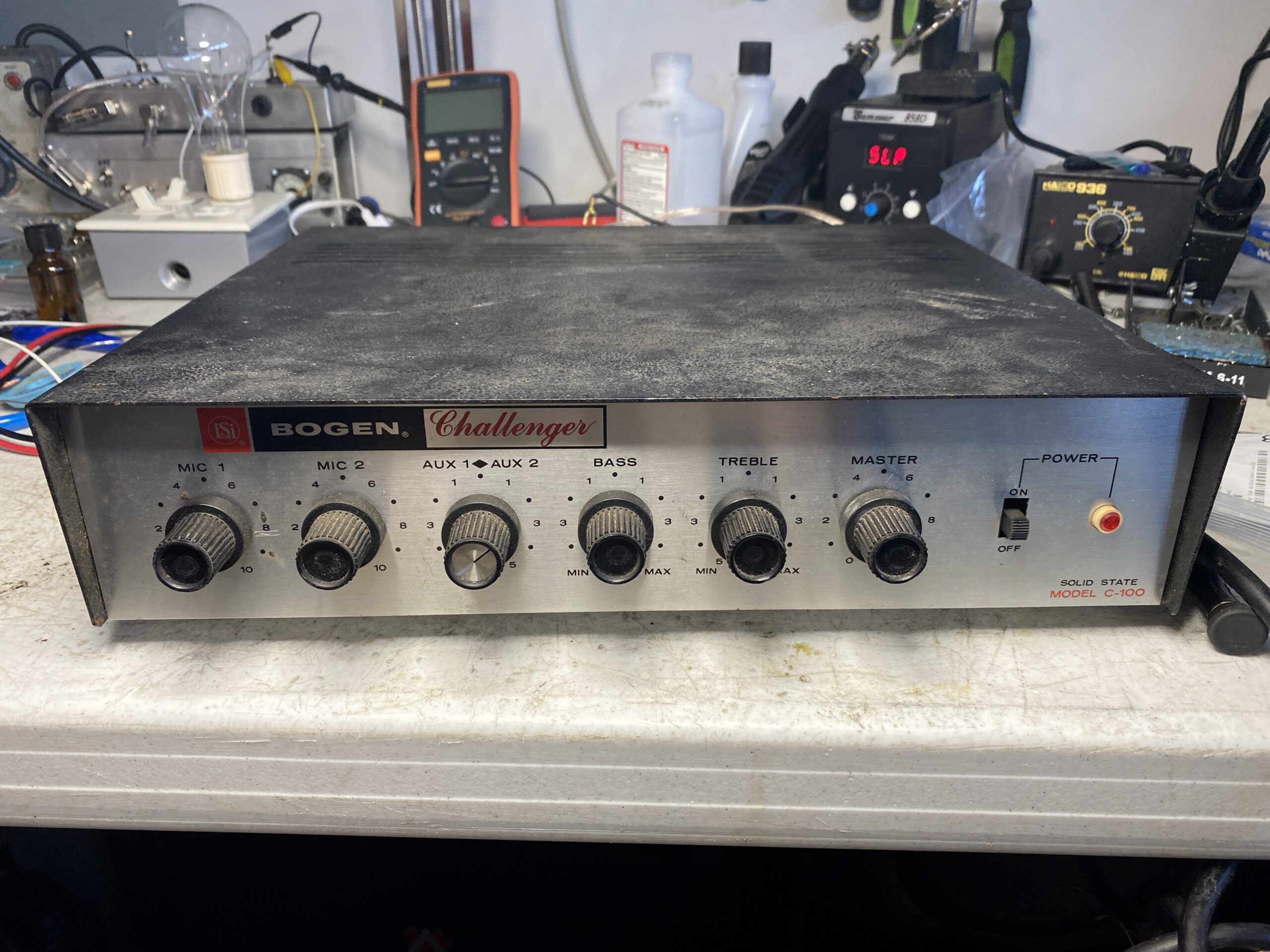 I stumbled across this amp while looking through Facebook marketplace in search of transistors and other parts. It happened to be local and the price was right. Most of these solid state amplifiers go for pretty cheap, so I figured what the heck. It was a little bit of a “challenge” to find the schematic for this model. I could find plenty of copies of the reissue modern version online, but not this one. A quick search and Bogen appears to still be in business. So I sent over an email to see if they still had a copy in their archives and sure enough a day later I got a reply with the schematic!
