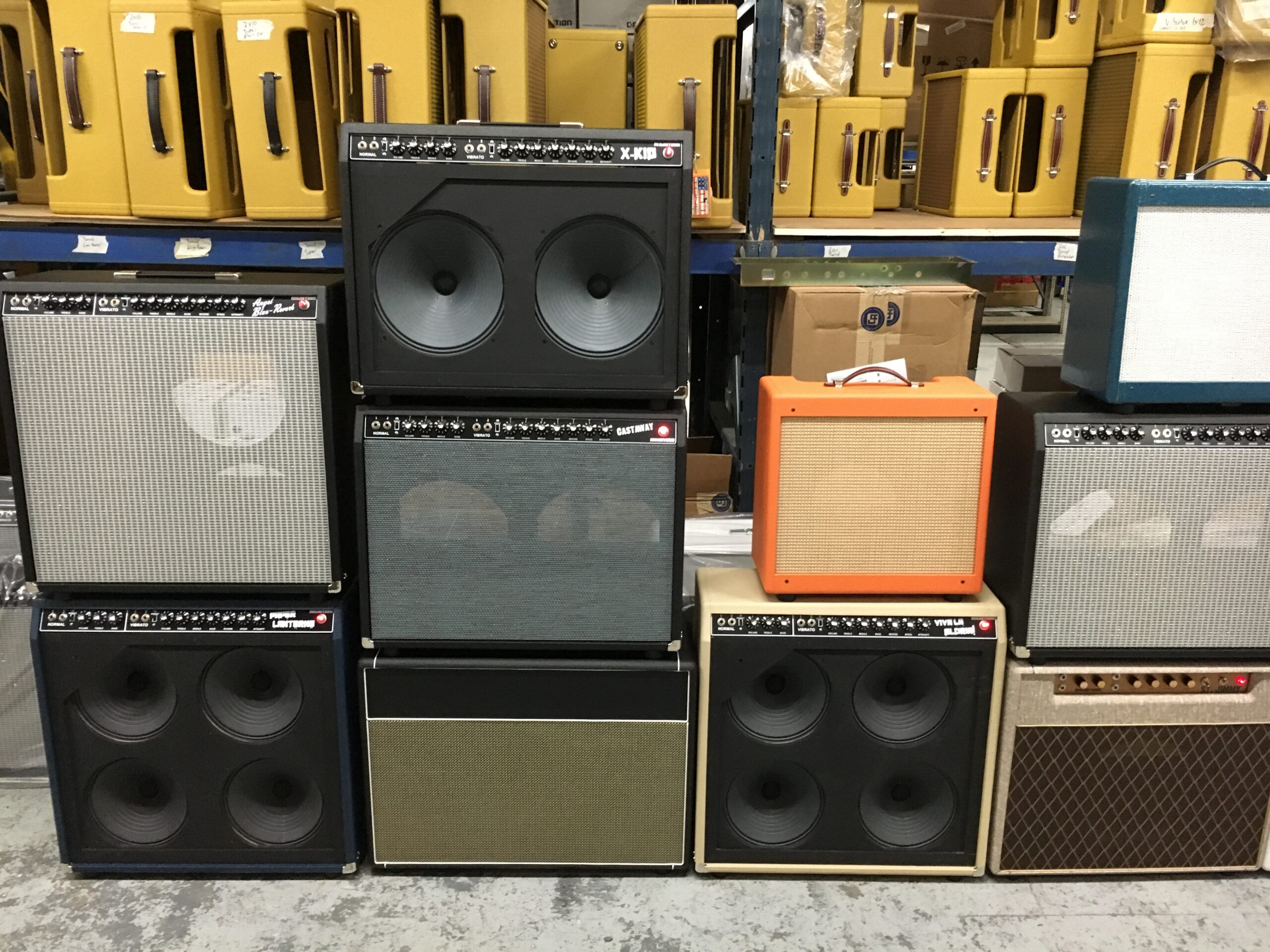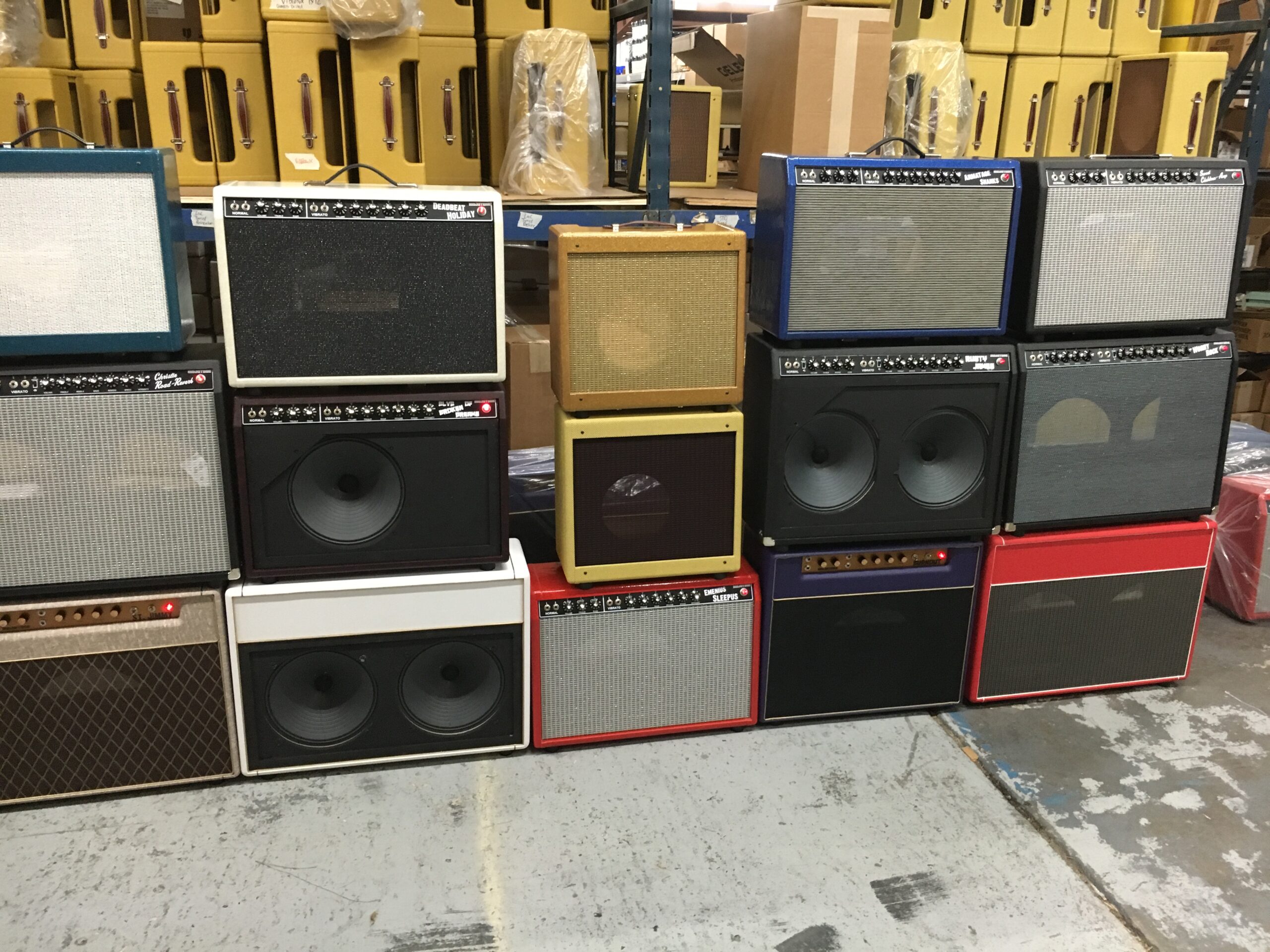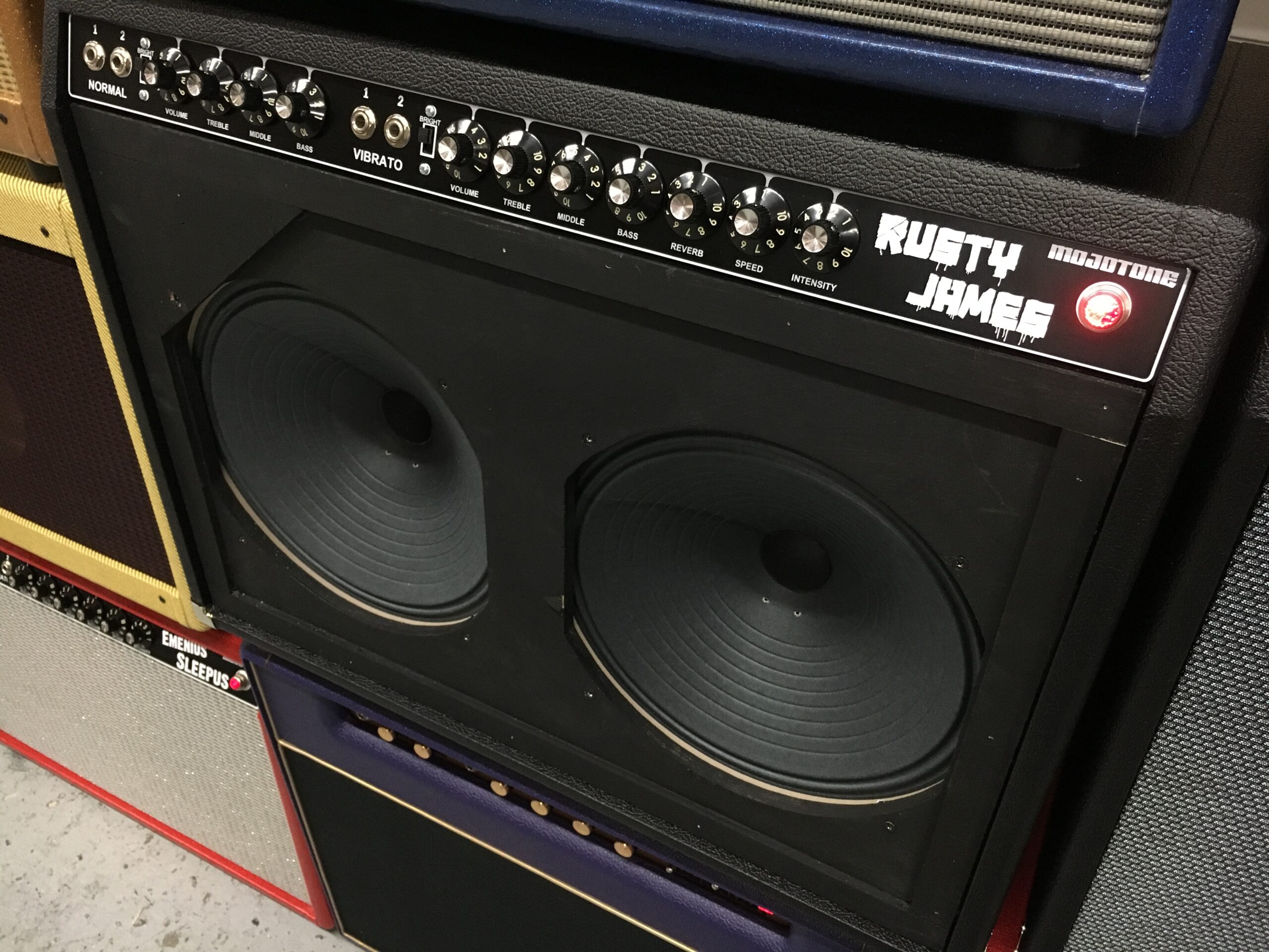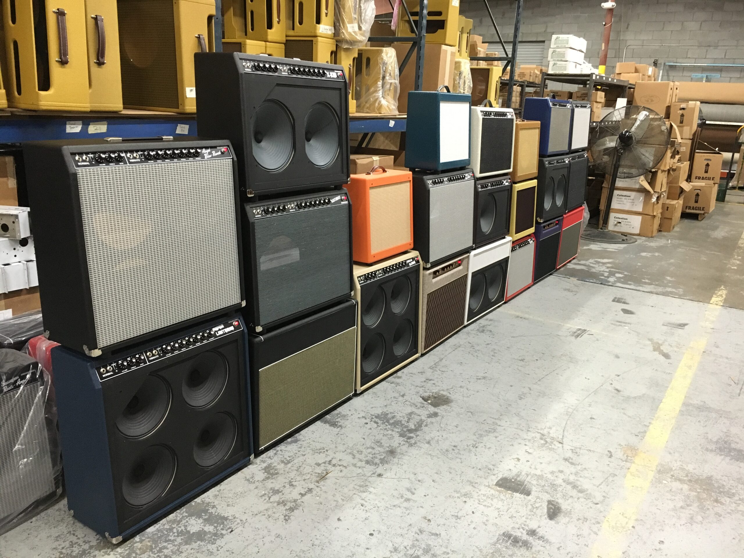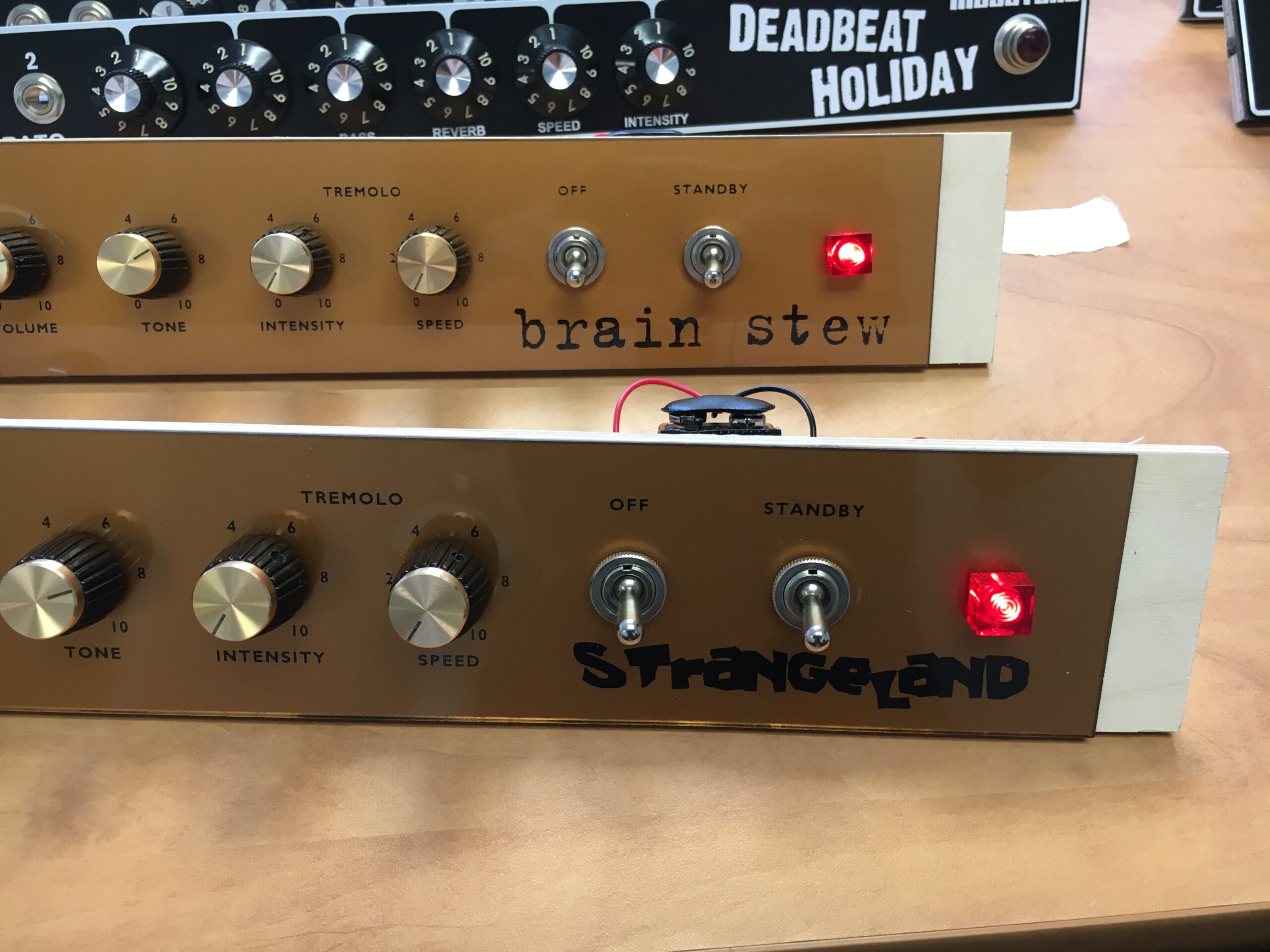 Just before Green Day took off on their big tour supporting the Revolution Radio album, they decided to do a smaller run of shows, including TV appearances. They wanted to have a pawn shop feel to their stage look, so they reached out to Mojotone, requesting a bunch of random cabinets that looked like they had been amps found in pawn shops. The ones where you could see a chassis or faceplate needed to have some sort of chassis to make the amp look real, as well as a functioning pilot light. I helped with the assembly and designing of some of the custom faceplates. Instead of putting amp names like “Deluxe Reverb,” each one had a Green Day song reference as the amplifier model, using various fonts that matched the Green Day album they were from.