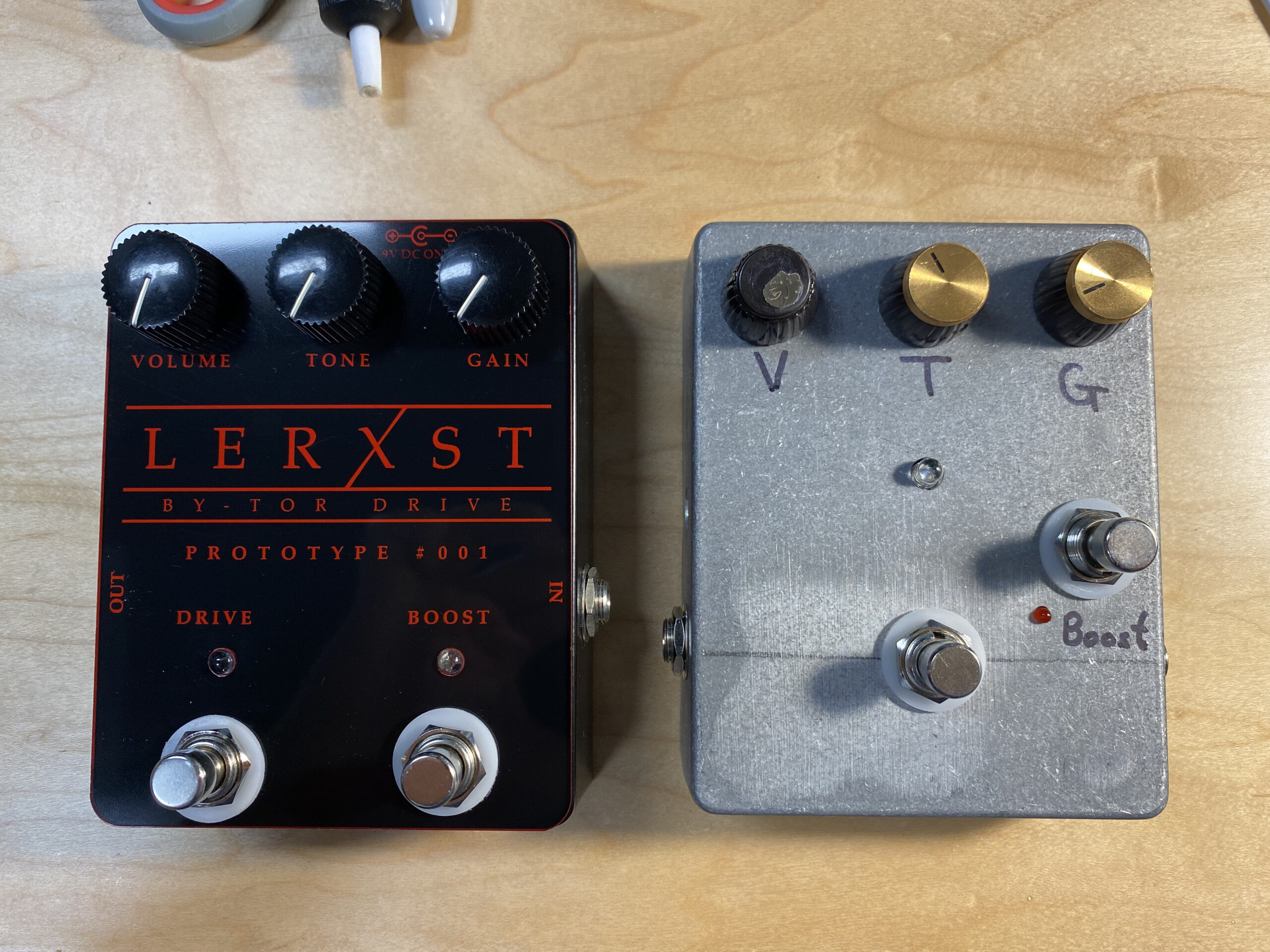 After nothing came of the original two Lerxst pedals that I designed for Alex back when we were first building them at Mojotone, I kept tinkering with a circuit to capture that big roar of a cranked-up Marshall. About three years later, after tinkering here and there, I finally came up with a circuit that had “that sound.” I kept the design and the prototype to myself, just in case I ever decided to build my own pedals.